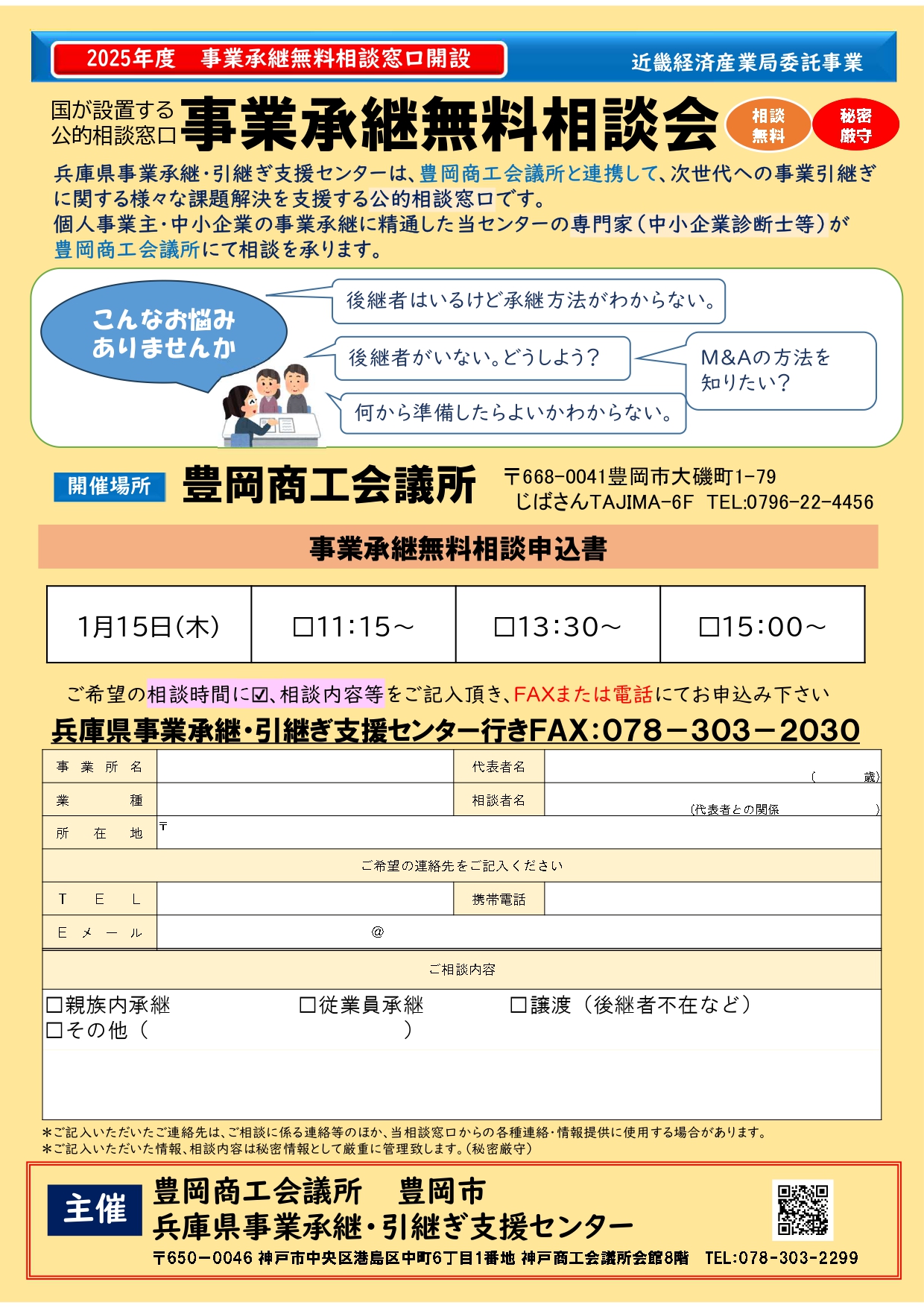 【出張相談会】 豊岡商工会議所 1月15日(木)