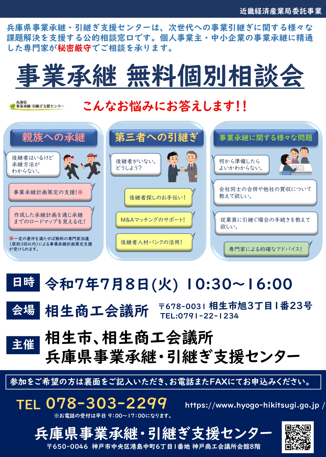 下記の内容にて、事業承継「出張相談会」を開催いたします