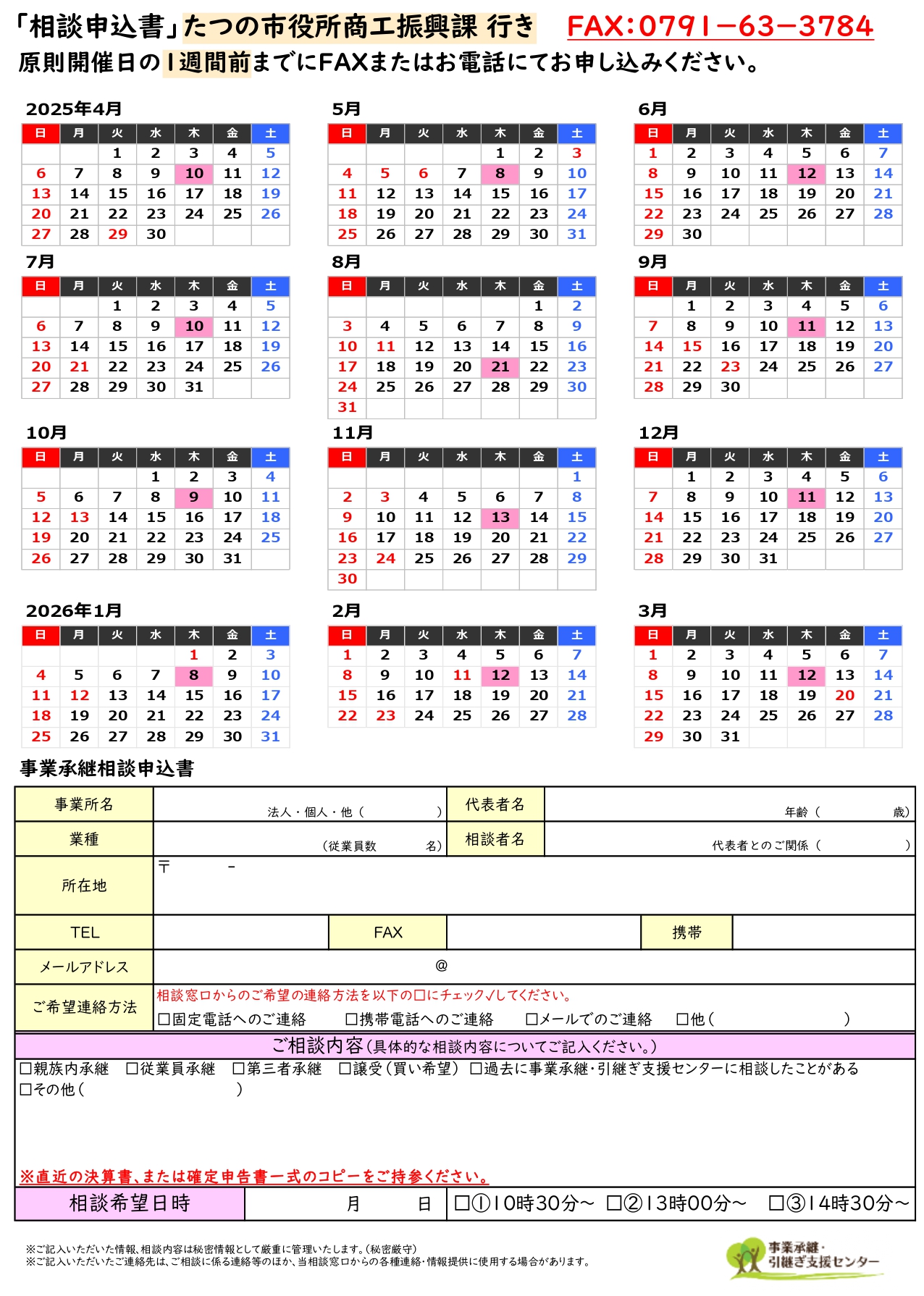 下記の内容にて、事業承継「出張相談会」を開催いたします