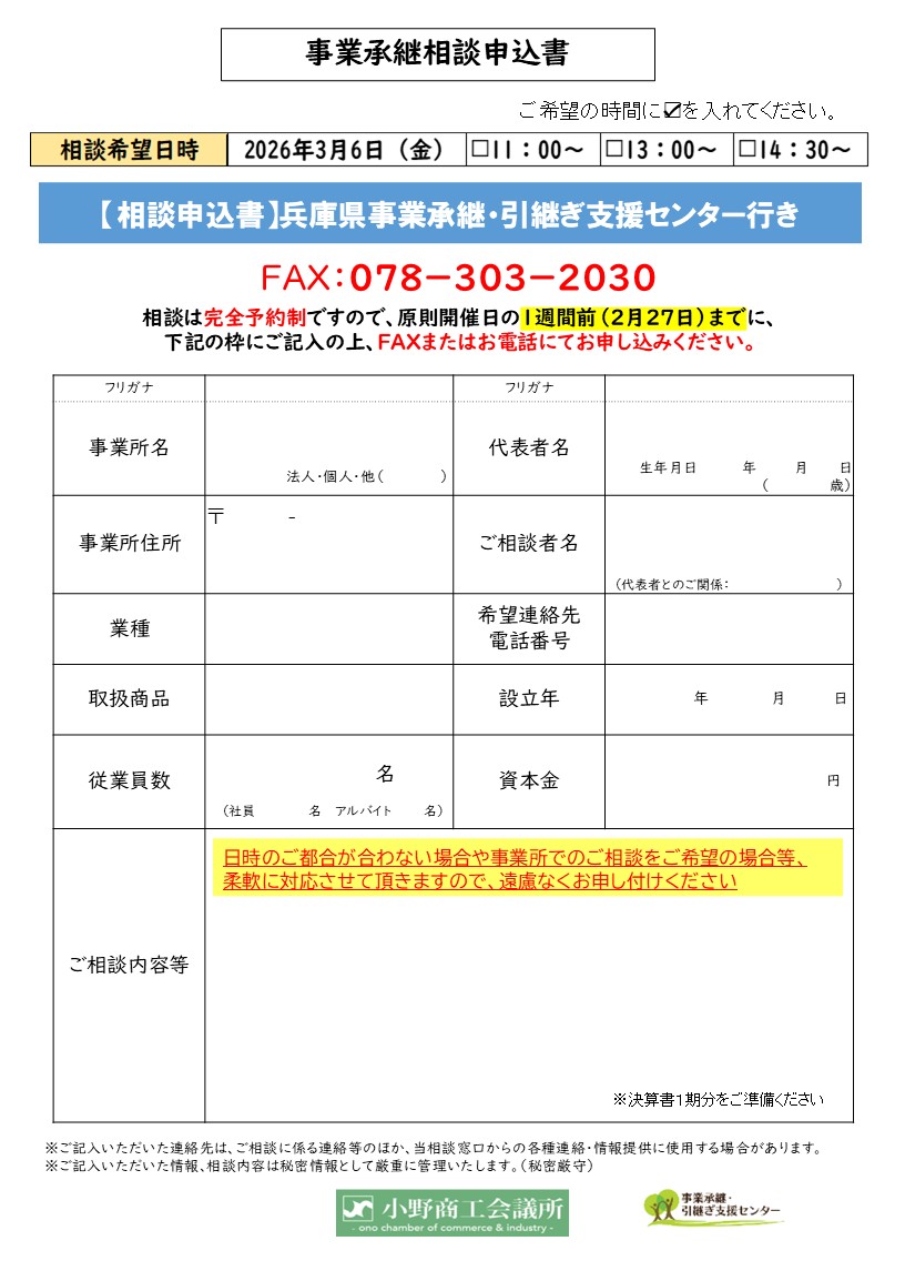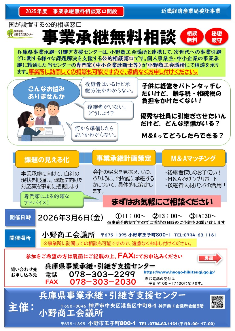 【出張相談会】 小野商工会議所 3月6日(金)