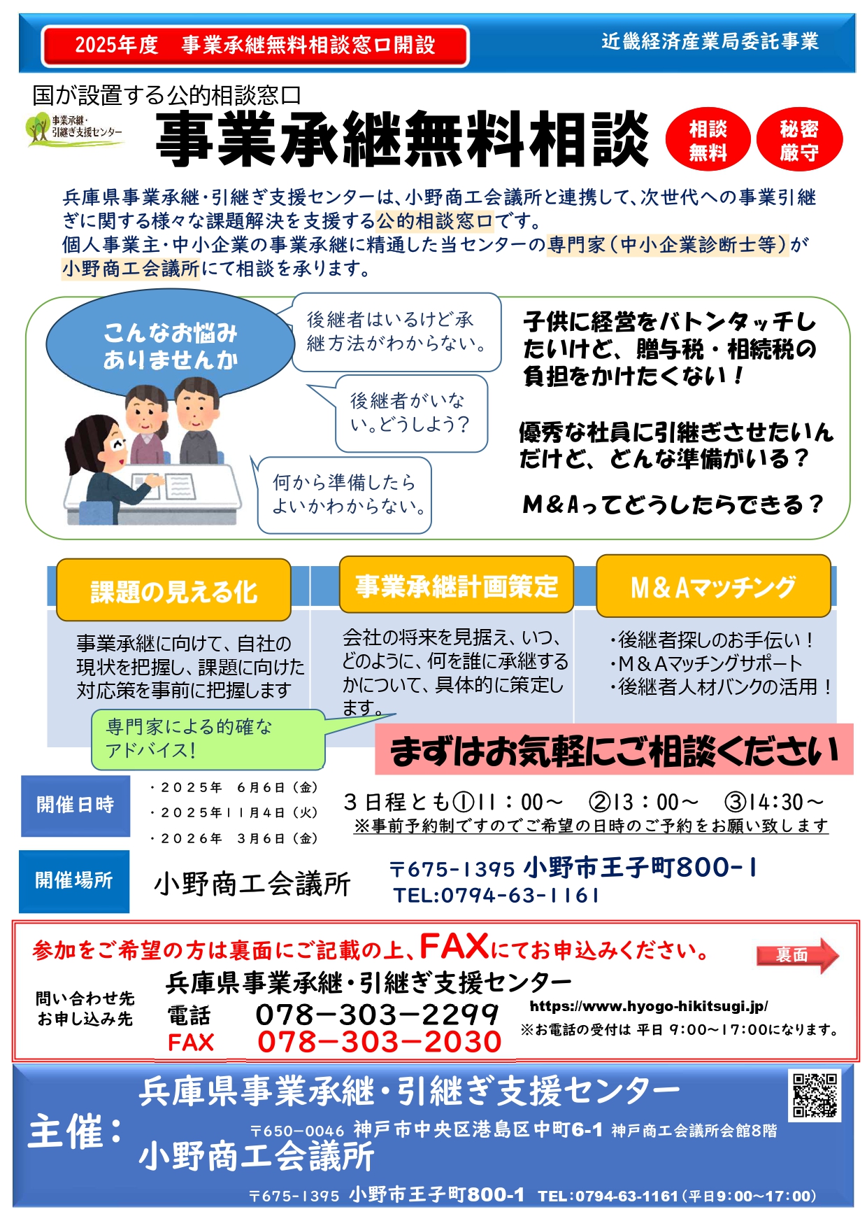 下記の内容にて、事業承継「出張相談会」を開催いたします