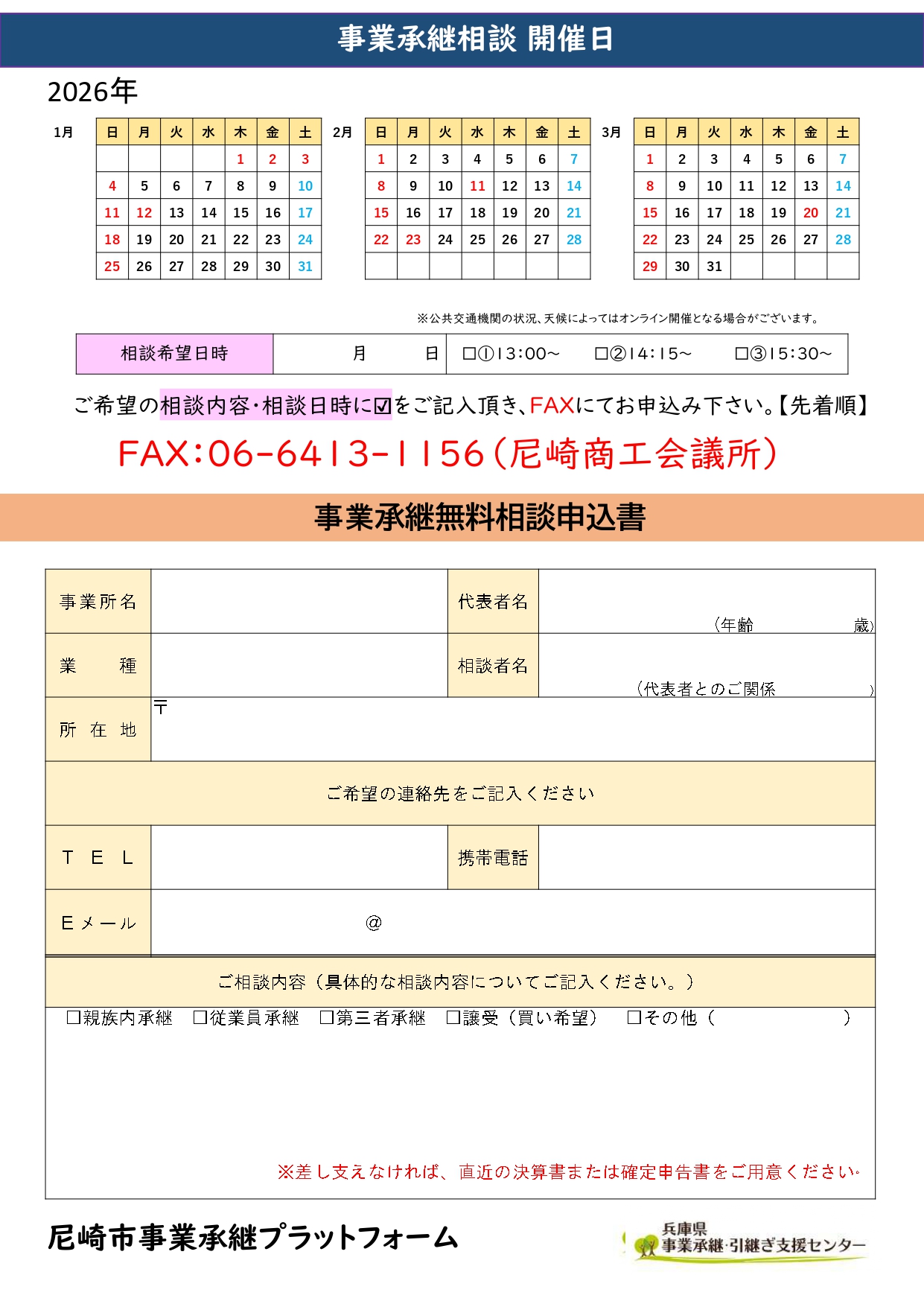 下記の内容にて、事業承継「出張相談会」を開催いたします