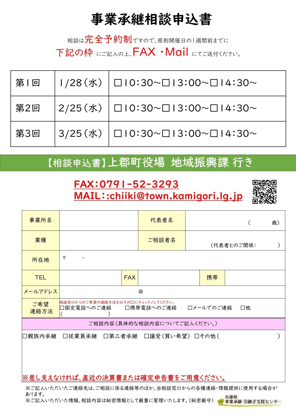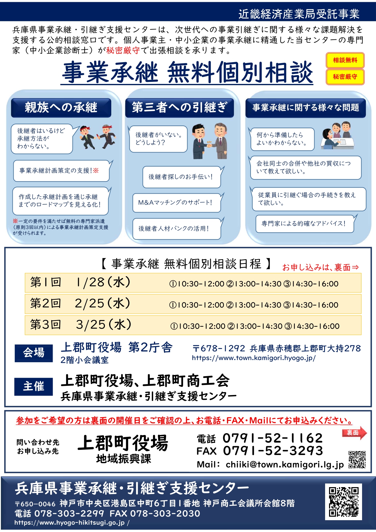 下記の内容にて、事業承継「出張相談会」を開催いたします