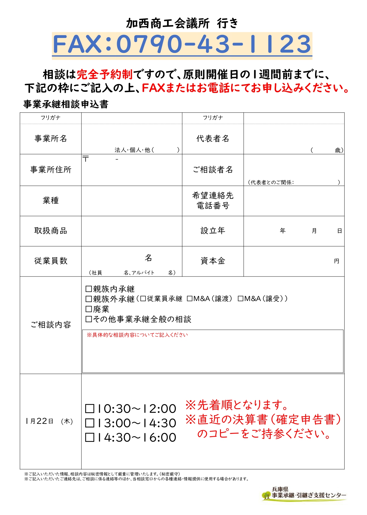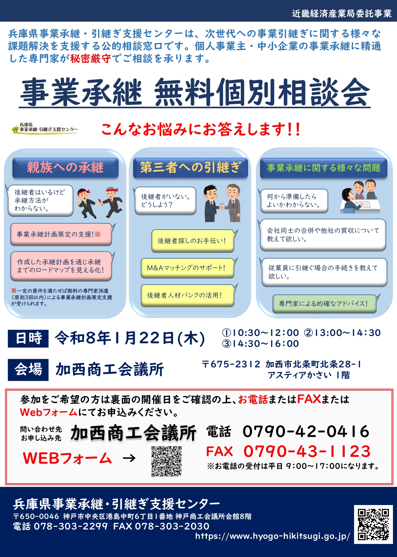 下記の内容にて、事業承継「出張相談会」を開催いたします