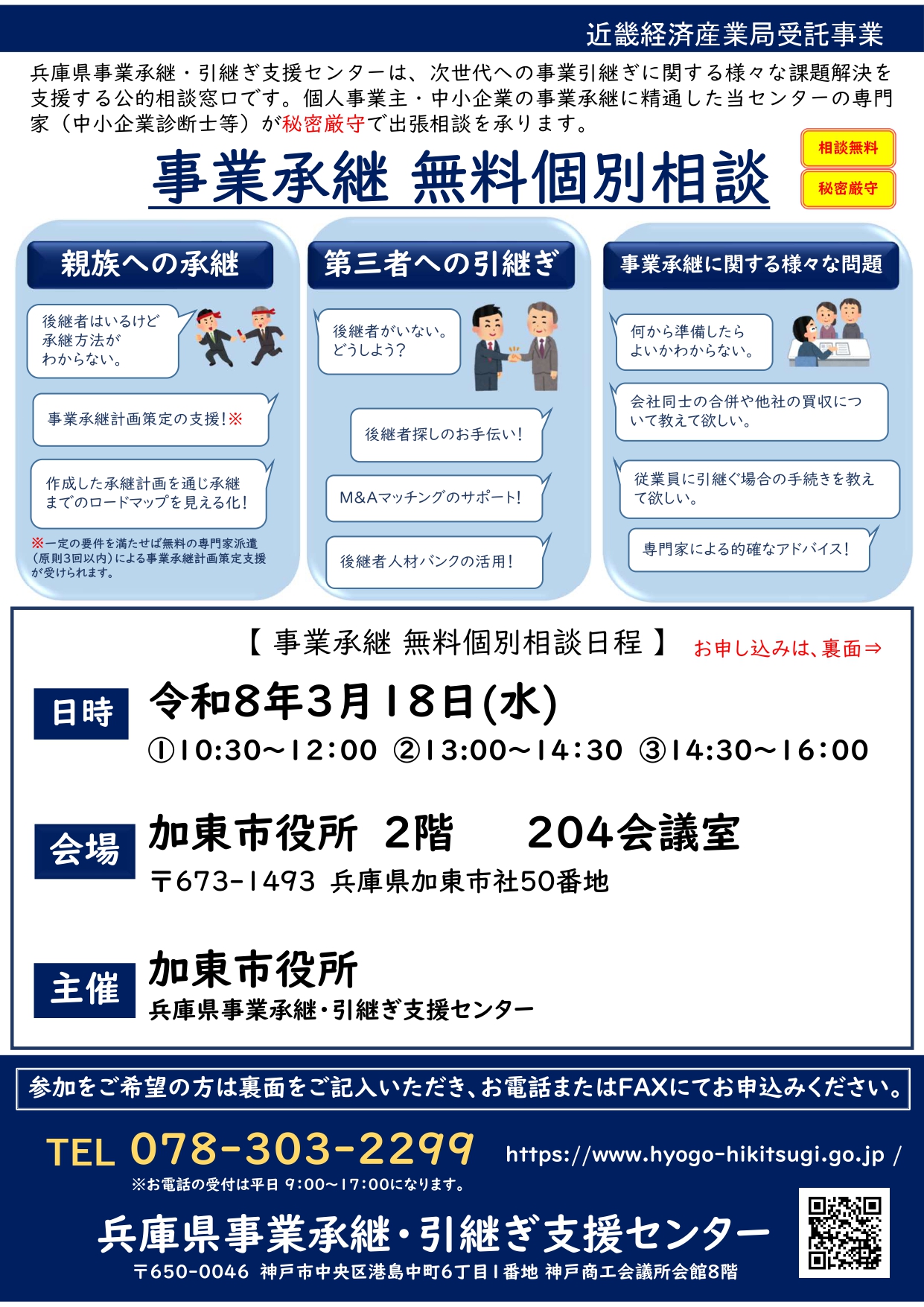 下記の内容にて、事業承継「出張相談会」を開催いたします